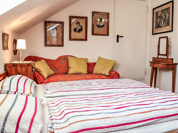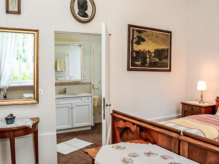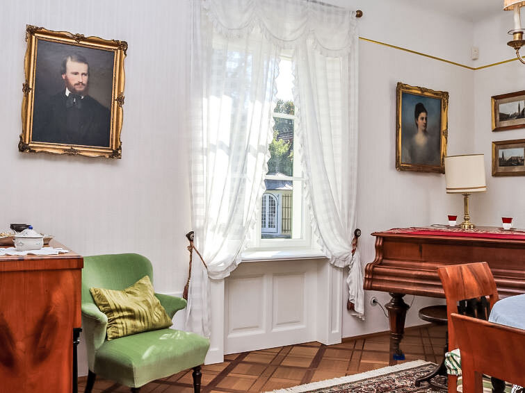 Villa 3 pièces 90 m2 sur 2 niveaux. Aménagement très de bon goût et de style: entrée. Séjour avec poele de faience. 1 chambre double avec douche/WC. Cuisine (4 plaques de cuisson, four, lave-vaisselle, micro-ondes) avec coin repas. WC séparé. À l'étage supérieur: 1 chambre double avec TV (câblée). Douche/WC. Chauffage par le sol. Terrasse couverte. Meubles de terrasse, réduit. Belle vue sur le jardin. A disposition: lave-linge. Internet (Connexion WIFI, gratuit). Place de parking (couvert, 2 Voitures) près de la maison. Veuillez noter: maison non-fumeur. Le mobilier de la Rosenvilla est d'origine Biedermeier. Il y a un piano à queue dans le salon. Le poêle en faïence présenté ici ne sert que d'ornement. En raison de l'équipement précieux, les enfants ne sont les bienvenus qu'à partir de 10 ans. Pour les réservations de plus de 8 nuits, un nettoyage est obligatoire et facturé 60 EUR par nettoyage sur place. Si le nombre d’occupants n’atteint pas le maximum, toutes les maisons ne seront pas disponibles.