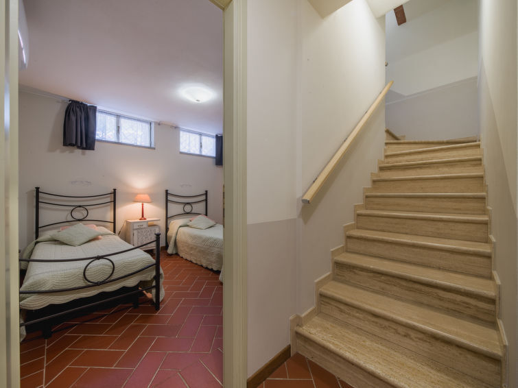 Huis 6-kamers 200 m2 op 3 verdiepingen. Ruim, mooi en gezellig ingericht: woonkamer met TV (Flatscreen TV). Uitgang naar de veranda. Groot keuken (oven, afwasmachine, 4 kookpitten (vlammen), broodrooster, waterkoker, magnetron, elektrische koffiemachine) met eettafel en air-conditioning. Uitgang naar de tuin. Douche/WC. Gas-verwarming, air-conditioning. Souterrain: 1 2-pers. kamer met air-conditioning. 1 kamer met 2 bedden en air-conditioning. Bad/bidet/WC. Bovenverdieping: 1 2-pers. kamer. 2 kamers, elke kamer heeft 2 bedden. Bad/bidet/WC. Terrasmeubelen, barbecue (verrijdbaar), ligstoelen (6). Ter beschikking: wasmachine, strijkijzer, klamboe, kinderstoel, kinderbed tot 2 jaar, haardroger. Internet (WiFi). Parkeerplaats (omheind, 5 Auto's). Rookvrij huis. Maximaal 1 huisdier/hond toegestaan. Rookmelders, brandblusser. IT046005C2XRJSAU8H