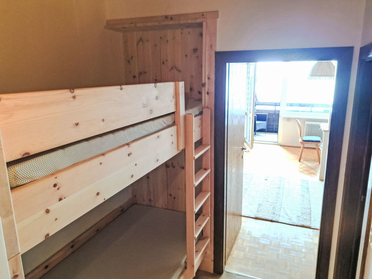 "Florian & Urban Apt. 132", appartement 1-kamer 35 m2. Comfortabel en gezellig ingericht: woon-/slaapkamer met 1 2-pers divanbed (160 cm, lengte 200 cm), 1 x 2 stapelbedden (90 cm, lengte 200 cm), TV en Flatscreen TV. Open keuken (oven, 4 keramische glas kookplaten, broodrooster, waterkoker, diepvriezer, elektrische koffiemachine) met eettafel. Douche, aparte WC. Olie-verwarming. Klein balkon. Balkonmeubilair. Zeer mooi panoramazicht op de bergen. Geschikt voor families. Niet rokers woning. Rookmelders.