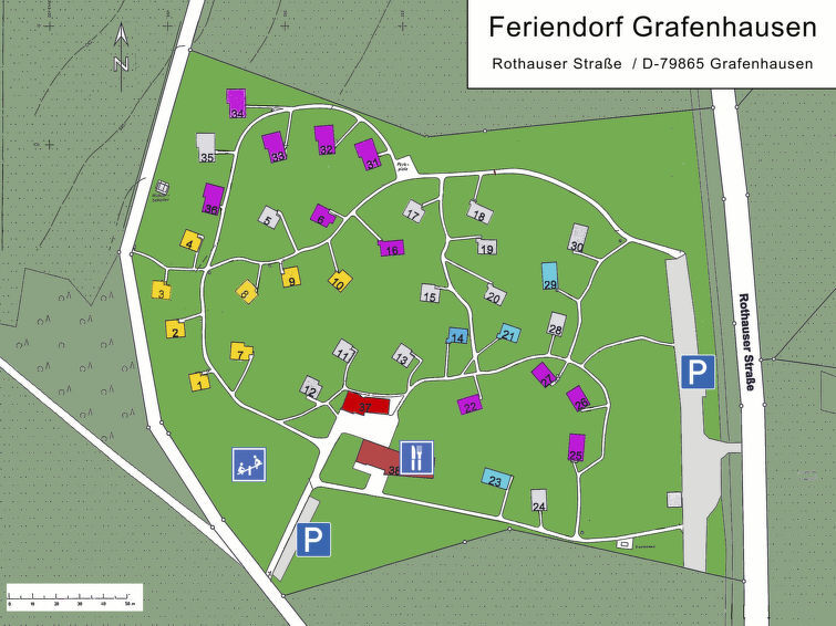 Grafenhausen / Rothaus 8 km van Schluchsee: Klein, gezellig vakantiedorp "Grafenhausen / Rothaus". 26 huizen in de plaats. 2 km van het centrum van Grafenhausen, in het district Rothauser Land, rustige, zonnige ligging, direct aan de bosrand, 8 km van het meer, 1 km van het skigebied, te midden van groen. Voor medegebruik: wild terrein met planten en bomen, weide. Stookplaats, kinderspeelplaats (glijbaan, schommel, zandbak). In het complex: receptie, restaurant, bergruimte voor fietsen, wasmachine (extra), droger (extra). Centrale parkeerplaatsen. Levensmiddelenwinkel 8 km, supermarkt 8 km, bushalte 400 m, treinstation 8 km, strandbad 2.5 km, meer (zwemmen) "Schlüchtsee" 2.5 km, meer Schluchsee 8 km. Golfterrein (18 holes) 15 km, wandelroutes, vanaf het huis, fietspad 1 m, skilift 1 km, skipisten 1 km, rodelbaan 1 km, langlaufloipe 1 km. Attracties in de buurt: Heimatmuseum Hüsli 1.2 km, Staatsbrauerei Rothaus 2 km, Schlühwana-Natur-Erlebnispark 1 km, Schwarzwaldhaus der Sinne 2 km, Criolla Gestüt 2.5 km, Hochfirst-Schanze 26 km. Bekende skigebieden kunnen gemakkelijk worden bereikt: Rothaus 1 km, Feldberggebiet 23 km. Bekende meren kunnen gemakkelijk worden bereikt: Schluchsee 8 km, Titisee 23 km. Wandelgebied Rothauser Land, Schluchseegebiet, Feldberggebiet, Hotzenwald, Schwarzwald. Autovrij vakantiepark.