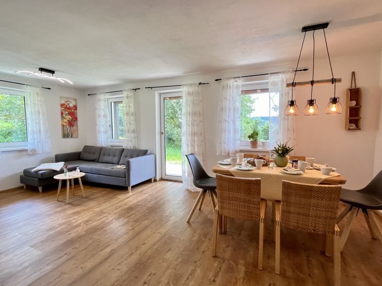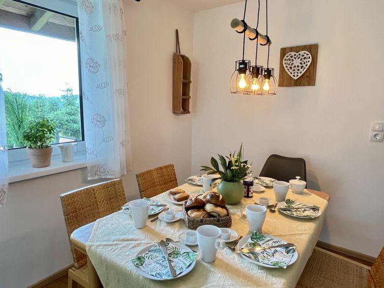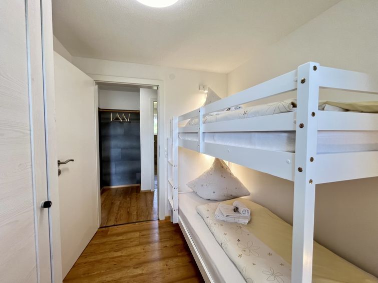"Rothüsli 35", huis 4-kamers 70 m2. Licht, gerenoveerd in 2023, mooi en gezellig ingericht: woon-/eetkamer met Sat-TV (Flatscreen TV), houtkachel. Uitgang naar de tuin, naar het terras. 1 2-pers. kamer met 1 2-pers bed (180 cm, lengte 200 cm). 1 2-pers. kamer met 1 2-pers bed (180 cm, lengte 200 cm). 1 kamer met 2 x 1 stapelbedden (90 cm, lengte 200 cm). Kleine keuken (oven, afwasmachine, 4 keramische glas kookplaten, broodrooster, waterkoker, elektrische koffiemachine). Aparte WC, bad/douche/WC. Elektrische verwarming, houtverwarming. Houten vloeren. Groot terras. Terrasmeubelen, bergruimte. Mooi uitzicht op de bergen, het dal, de tuin en het bos. Ter beschikking: haardhout (gratis). Internet (Internet (WiFi), gratis). Rookvrij huis.