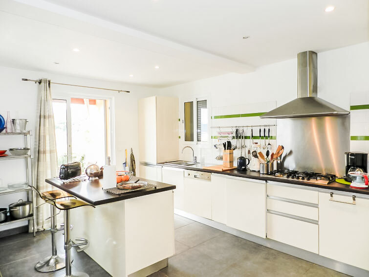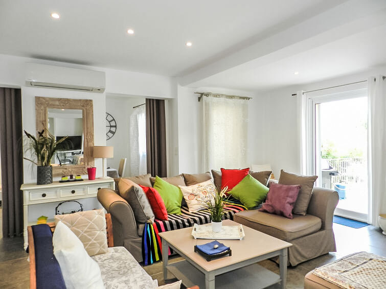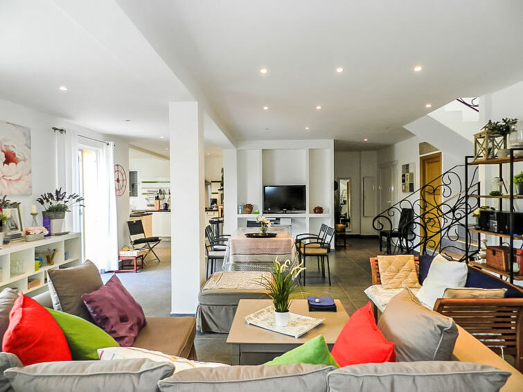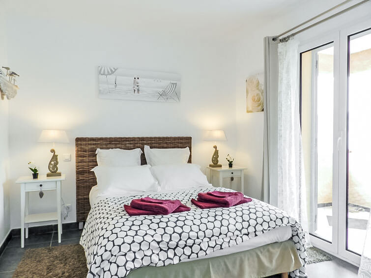 Villa 4-kamers 175 m2 op 2 verdiepingen. Ruim, zeer mooi en smaakvol ingericht: woonkamer met TV (Flatscreen TV), stereo-installatie en DVD. Eetkamer. Uitgang naar het terras. 1 kamer met Kleedkamer met 1 2-pers bed (160 cm), douche/WC. Open keuken (5-pits kookplaat, oven, afwasmachine, broodrooster, waterkoker, magnetron, diepvriezer, elektrische koffiemachine, kookeiland). Aparte WC. Bovenverdieping: 1 kamer met Kleedkamer met 1 2-pers bed (140 cm), douche/WC. Uitgang naar het balkon. 1 kamer met Kleedkamer met 2 bedden (90 cm), douche/WC. Uitgang naar het balkon. Elektrische verwarming, air-conditioning. Balkon 20 m2, terras 65 m2. Terrasmeubelen, barbecue, ligstoelen (5). Zeer mooi uitzicht op zee en de bergen. Ter beschikking: wasmachine, strijkijzer, kinderbed, haardroger. Internet (Internet (WiFi), gratis). Geschikt voor families. Rookvrij huis. Rookmelders. FR51885