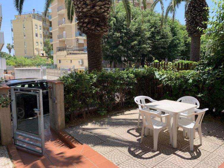 Appartement 3-kamers 55 m2, op de begane grond. Doelmatig ingericht: woon-/eetkamer met 1 divanbed en TV. Uitgang naar de tuin. 1 kamer met 1 bed en 1 2-pers bed. 1 kamer met 2 bedden. Kookhoek (4 kookpitten (vlammen), magnetron). Douche/bidet/WC. Verwarming, air-conditioning. Verwarming alleen beschikbaar van 01.11. tot 15.04. Kleine tuin. Terrasmeubelen. Ter beschikking: wasmachine. 1 klein huisdier/hond toegestaan. Privé ingang. IT044066C2XNO5KI2K