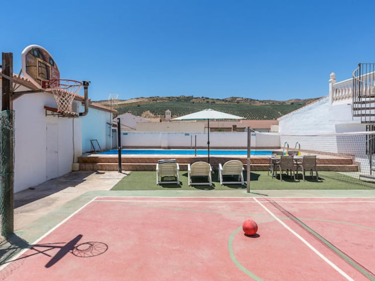 Cacin 42 km van Granada: Huis "Rural Cacin". Aan de rand van de plaats, 400 m van het centrum van Cacín. Voor alleengebruik: terrein 300 m2, tuin met gazon 50 m2, openluchtzwembad (5 x 10 m, 140 - 170 cm diepte, seizoensgebonden beschikbaarheid: 01.Mei. - 30.Sep.). Buitendouche, tennisbaan, basketbal, volleybal, badminton, eigen garage. Oplaadstation. Winkel 150 m, restaurant 300 m, bushalte 200 m. Attracties in de buurt: Parque Natural de la Sierra Tejeda 25 km. Wandelgebied Tajos del rio Cacín 4 km. Geen lift. Kunstgras, er is een basketbalkorf en -bal. Verplaatsbare barbecue.